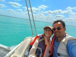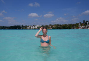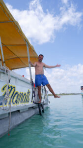 Mais bien sûr Bacalar ce n’est pas uniquement ses restaurants ! C’est une eau d’un bleu turquoise vif qui se décline en fonction des profondeurs, sur tout le long du lagon. Des variations de fond il y a en a, majoritairement grâce aux cénotes qui composent Bacalar. Le plus impressionnant est le « Cénote Negro » avec ses 90 mètres de profondeur ! Il faut imaginer passer d’un mètre de profondeur à 90 mètres d’un seul coup. Nous avons pu découvrir les principaux lieux du lagon grâce à un petit tour en bateau: les différents cénotes, le fort de Bacalar qui fait face aux passages des pirates, les stromatolithes (des conglomérats de bactéries vieilles de 3,7 milliards d’années, en gros ça ressemble à des cailloux mais ça n’en est pas !)…