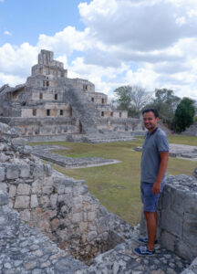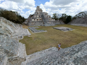 Après cette route chaotique nous atteignons enfin Edzna, un autre site archéologique maya. La cité y est très bien restaurée; Ici les grandes places sont défrichées laissant deviner la grandeur passée de la ville. Une fois de plus nous avons croisé très peu de monde, un plaisir de déambuler au milieu de ces belles ruines restaurées. J’en profite pour préciser que ce que vous voyez sur les photos ne correspond pas à ce que les archéologues ont trouvés. Avant les restaurations, ça ressemblait plutôt à des gros tas de cailloux, avec de part et d’autre des bouts encore debout. Grâce au travail des archéologues et au morceau encore en état, ils ont réussi à remonter des pans de mur et à recréer certaines structures. C’est ce travail qui est aujourd’hui visible. (pour se rendre compte de ce à quoi ça ressemblait au moment des découvertes archéologiques: https://momentosdelpasado.blogspot.com/2018/05/fotografias-ruinas-mayas-siglo-xix.html).