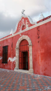 Nous arrivons à Campeche ! Nous séjournons au cœur de la ville fortifiée à l’hôtel Castelmar, un charmant hôtel colonial, avec sa petite cour intérieure, ses loggias tout autour, son petit puit au milieu… superbe ! Campeche est une ville sur le bord du golfe du Mexique. En son centre se trouve donc la vieille ville fortifiée, entourée de fins remparts qui accueillent le long des rues rectilignes des maisons aux teintes pastels: rose clair, vert d’eau, parme, orange, jaune…
