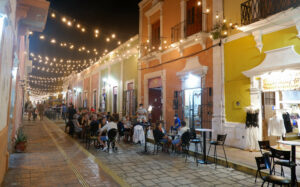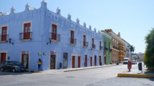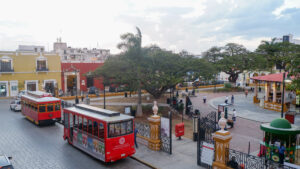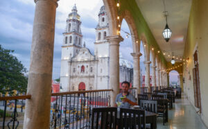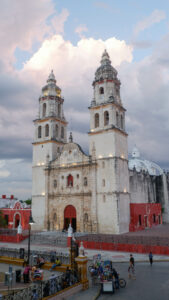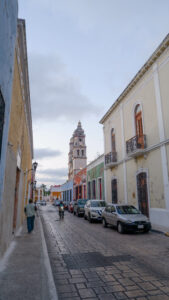 Le cœur de la ville est le « zocalo », une place centrale avec de grands arbres, des bancs et un patio. Les mexicains s’y retrouvent pour discuter et jouer en fin de journée. Tout autour il y a la cathédrale et d’autres édifices prestigieux : maisons nobiliaires, bibliothèque… Nous profiterons pleinement de cette place grâce à un petit apéro dans une loggia en hauteur, pleine vue sur la cathédrale ! Pour le dîner nous nous dirigeons vers la calle 59, la majorité des restaurants de la vieilles villes y sont rassemblés. Entièrement piétonne, nous dînons le long des maisons colorées et sous un ciel de guirlandes lumineuses. Attention il ne faut pas être pressé dans ce coin là du Mexique, les plats se méritent. Pour patienter nous avons nos jeux de cartes mais aussi plusieurs petits groupes de musique qui déambulent, avec un coup de cœur pour les trois grand-pères qui poussent la chansonnette !