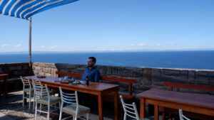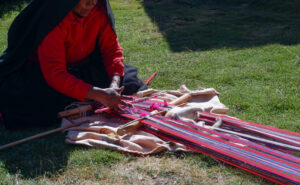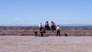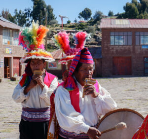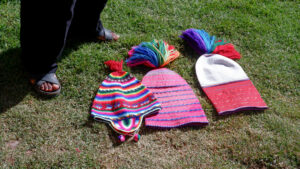 Sur l’île, les habitants portent presque tous l’habit traditionnel. Huata nous explique chacune de leur tenue. Les ceintures sont importantes notamment dans les couples mariés vu qu’elles symbolisent le lien, ce que nous symbolisons par l’alliance. Les bonnets sont des emblèmes de statut matrimonial, si la partie supérieure du bonnet est blanche c’est que le jeune homme est célibataire, mais aussi un emblème de pouvoir, ceux qui sont multicolores sont réservés aux chefs des communes. Huata nous explique des tas d’autres petites choses sur l’île comme lorsque deux Taquiliens disent bonjour, ils échangent des feuilles de coca, ou encore que seules les femmes tissent et que les hommes eux, tricotent.