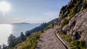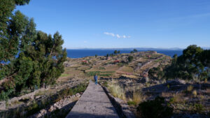 Ces presque trois jours sur Taquile seront un moment au calme sur une île paisible qui semble coupée du monde, mais aussi une immersion dans la vie locale de l’île, son fonctionnement, sa communauté. Nous apprenons beaucoup de choses grâce à Huata, notre hôte. Sa famille vit sur l’île depuis des générations. Lors de la conquête espagnole, le général Taquile qui donna le nom à l’île, chercha à développer l’agriculture sur ce petit bout de terre. Pour cela, la main d’œuvre locale ne suffisait pas, il a donc fait venir des familles de plusieurs autres villages bordant le lac. C’est de ce mélange qu’est issue la famille de Huata et de Juana sa femme.