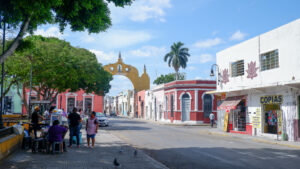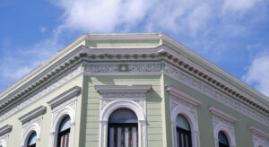 Mérida, capitale du Yucatan. Ici encore nous avons trouvé un joli hôtel. Notre chambre donne sur une cour centrale avec ses arcades et sa fontaine au milieu. Absolument charmant, si ce n’est les travaux incessants du terrain d’à côté ! Mérida est une ville d’une autre importance, rien qu’aux édifices qui la composent nous sentons que la ville a une histoire coloniale riche. Il suffit de voir à quoi ressemble le théâtre, l’université ou encore le palais du gouverneur. Le premier soir nous remontons une grande allée à la recherche d’un restaurant. Sur tout le long s’étalent de magnifiques hôtels particuliers de l’époque post colonial !