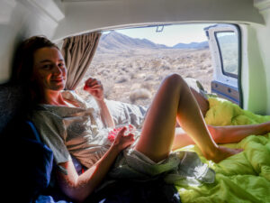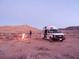Nous passerons la nuit au bord du National Park, n’ayant plus de place dans les campings officiels. Nous ne perdrons pas au change, notre vue y est magnifique au milieu des plaines et des montagnes à perte de vue.