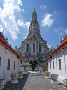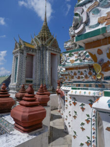 Après ce petit tour dans les klongs, notre bateau nous dépose à Wat Arun, un incontournable de Bangkok ! Nous y avions dîné devant mais sans avoir le temps d’y aller lors de notre premier passage. Nous sommes contents de visiter un beau temple bouddhiste, ça nous avait un peu manqué !