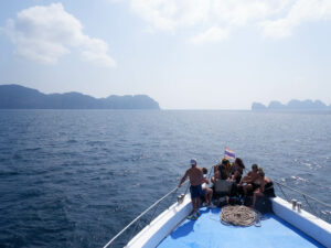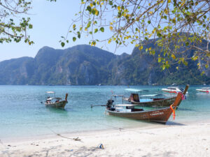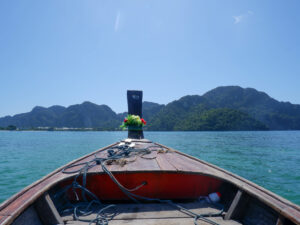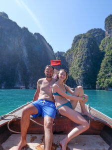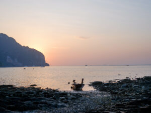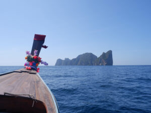 Que vous dire d’autres du reste de notre séjour ? Nous sommes restés bien plus longtemps que prévu à Ko Phi Phi, notre petit bungalow nous offrant un magnifique spectacle tous les jours on a eu du mal à le quitter ! Malgré le lit un peu dur, la moustiquaire trop petite et le cafard de la salle de bain (beaucoup de cafard en Thaïlande). On a aussi adoré « Oao », notre propriétaire avec son grand sourire, sa douceur et son traducteur sur son téléphone pour pallier à son anglais restreint car Oao aime bien expliquer, partager, malgré la barrière de la langue. On aime aussi le fait d’aller et venir sur le petit long-tail boat de l’hôtel !