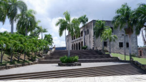 Lever 1h du matin, pour un vol à 3h du matin, nous faisons escale 3h30 plus tard pendant bien 5h à Bogota avant de nous envoler pour Saint-Domingue. Et encore, une fois sur le sol dominicain, nous ne sommes pas encore à notre hôtel situé dans la cité coloniale, le centre de la capitale. Aaaah ces chauffeurs de taxis à la sortie des aéroports… ils commencent un peu à nous gonfler, d’autant plus qu’en République Dominicaine ils mettent en place un véritable blocage pour empêcher les transports publics de desservir l’aéroport. Et puis ne parlons même pas des prix totalement aberrant qu’ils proposent… bref il n’y a qu’une seule solution pour l’éviter: marcher bien 20 minutes sous le cagnard, traverser à pied une autoroute, prendre un « guagua » (c’est le petit nom des grands vans de transports en commun), puis marcher encore bien 20 minutes en passant par des quartiers pas très sympas. C’est ce que nous avons fait. Notre conseil suite à cette expédition: payez très cher un taxi à la sortie de l’aéroport !