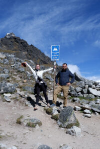 En haut du « gringo killer », il nous reste Ă traverser une belle plaine et Ă monter encore un peu jusqu’au col ! Niveau mal des montagnes tout le monde n’est pas Ă©gaux, Nicolas peine un peu. DifficultĂ©s Ă respirer, vertiges… on essaie de pallier en mĂąchant des feuilles de coca pas vraiment dĂ©licieuses ! Cette astuce expliquĂ©e par les guides permet dâattĂ©nuer les maux de tĂȘte causĂ©s par lâaltitude. Pas Ă pas, nous parvenons Ă atteindre le majestueux point de vue ! La roche, les sommets enneigĂ©s nous entourent, c’est superbe !