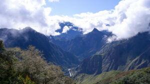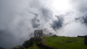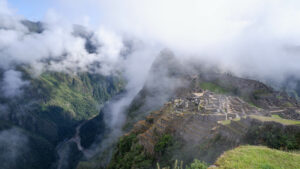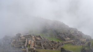 Jour 5, le jour du Machu Picchu ! Au vu de l’Ă©tat des genoux de Sixtine, nous dĂ©cidons de prendre l’option confortable pour atteindre la citĂ© suspendue: le bus. Il s’agit en plus d’une montĂ©e raide d’une heure sans grand intĂ©rĂȘt. Nous sommes devant l’entrĂ©e aux alentours de 6h et complĂštement dans les nuages. Le guide nous amĂšne au dĂ©but du parcours, tout en haut au point de vue principal. Nous ne voyons qu’un Ă©pais nuage blanc.