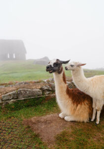 Il faut maintenant prendre patience et attendre qu’il se dĂ©couvre. le Machu Picchu ça se mĂ©rite ! Ă cĂŽtĂ© de nous des lamas sont installĂ©s, mĂąchant imperturbablement. Doucement, tout doucement, les ruines apparaissent au fur et Ă mesure. Et voilĂ la cĂ©lĂšbre carte postale du Machu Picchu. Malheureusement les ruines ne sont pas encore tout Ă fait dĂ©couvertes qu’il faut dĂ©jĂ y aller !