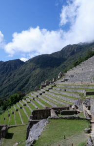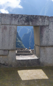 Nous commençons le circuit, admirant ces blocs de pierre monumentaux, polis et taillĂ©s au millimĂštre prĂšs pour s’emboĂźter parfaitement avec le reste. Nous observons aussi toute sorte d’excroissance dans les pierres qui sont censĂ©es rĂ©vĂ©ler, grĂące Ă un jeu d’ombre, des formes symboliques Ă des moments prĂ©cis du calendrier astronomique. Le Machu Picchu nâest pas si grand et un peu trop rapidement le circuit se termine. Pas question de revenir sur ses pas, c’est strictement interdit… nous nâavons pas vraiment le temps ni le droit de flĂąner au Machu Picchu… victime de son succĂšs !