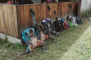 Il nous reste encore deux heures de marche avant d’atteindre le lieu du dĂ©jeuner. Une belle descente dans une nouvelle vallĂ©e. Il nây a pas Ă dire, aujourd’hui nous en avons encore plein les yeux ! Nous ne sommes cependant pas mĂ©contents de dĂ©jeuner aprĂšs tous ces efforts. La pause est plutĂŽt de courte durĂ©e, nous avons encore trois heures de descente avant notre camp. C’est donc bien fatiguĂ©s mais ravis que nous atteignons nos petites cahutes pointues. La soirĂ©e est trĂšs sympathique, accompagnĂ©e d’une bouteille de rhum et d’un jeu de cartes, nous jouons tous ensemble.