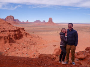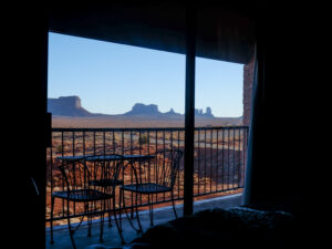 Notre passage à Monument Valley c’est aussi une petite pause dans notre road-trip américain. Nous avions pris un chouette hôtel avec vue sur la vallée pour deux nuits. Nous avons passé une journée entière à ne rien faire, quel plaisir ! Depuis notre arrivée, on a eu un peu du mal à ralentir le rythme. La route, les randonnées, le camping… tout s’enchaînait à une vitesse ! Le fait que notre road-trip n’était pas très organisé nous a un peu desservi sur cette destination. Pour ne pas être organisé aux États-Unis il faut soit tripler le budget, soit faire beaucoup plus de route ou ne pas être très regardant ! Tout le long, nous avons cherché nos endroits pour dormir la veille ou le jour même. Il arrivait bien souvent que soit les lieux ne soient plus disponibles, soit qu’il fasse trop froid pour dormir dans le van, soit qu’il soit fermé pour l’hiver, soit qu’il n’y ait absolument personne et que ça soit trop glauque… Du coup, on court un peu plus à droite et à gauche, on se pose un peu moins sur les lieux de repos. Ces deux nuits ont donc permis de ralentir le rythme et c’était bien !