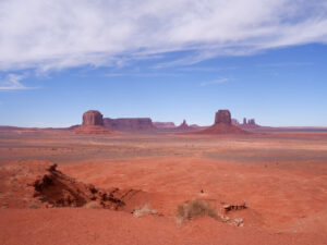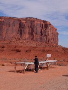 L’effet « western » est encore plus renforcé par le fait que nous sommes au cœur de la réserve amérindienne des Navajos. Les Navajos, c’est le plus grand peuple amérindien des États-Unis. Ils ont leur propre système administratif, policier et judiciaire. Ils sont tout de même 170 000 à vivre dans la réserve ! Il faut aussi ajouter que ce peuple est un des seuls à avoir réussi à se réapproprier leurs terres ancestrales, après avoir été victimes de nombreux massacres et déportations. Ce lieu, ces roches, ces plaines forment un environnement sacré sur lequel repose toute leur spiritualité. En effet, en son centre se trouve la recherche de « l’hozho », l’harmonie, à travers le culte de la nature.