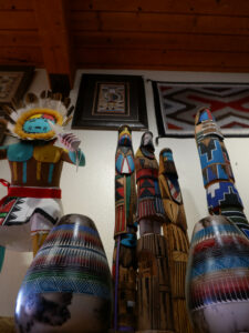 Jusqu’à présent aux États-Unis, l’aspect culturel et historique manquait un peu à notre voyage – et pourtant sur la route nous avons écouté pas mal de podcasts sur l’histoire de ce grand pays. Après la Thaïlande, si différente de notre mode de pensée européen et surtout si peu connue, les États-Unis sur le plan culturel nous donnaient un effet un peu moins riche, notamment aussi parce que même si nos cultures diffèrent sur bien des points nous la comprenons avec beaucoup plus de facilité, nous avons une histoire commune. De plus, le grand joyau des États-Unis est son patrimoine naturel, beaucoup moins ses vieilles pierres. Bref, l’étude, la découverte de nouvelles cultures nous manquait un peu. Alors quelle joie de pouvoir se pencher sur les Navajos: leur histoire, leur fonctionnement et leur spiritualité ! Cette présence culturelle donne beaucoup plus de profondeur aux merveilleux paysages qui nous entourent.