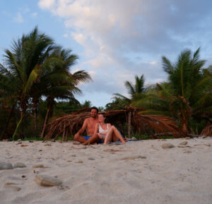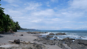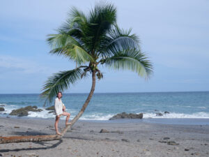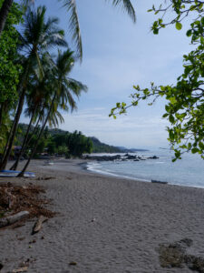 Nous continuons notre route à travers les pistes, la route est chaotique, idéal pour du quad ! Nous finissons par nous installer à la plage Carmen. Après un bon déjeuner, nous remontons la plage à la recherche d’un peu d’ombre, le soleil étant bien trop fort pour s’y exposer directement. Nous remarquons des petites cabanes bricolées à base de palmes de cocotiers et finissons par en choisir une pour passer notre après midi. Après quelques rafistolages, la cabane est prête. Dans une ambiance Robinson Crusoé, nous profitons de notre dernière vraie journée au Costa Rica entre lecture, baignade et sieste.