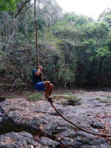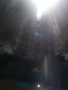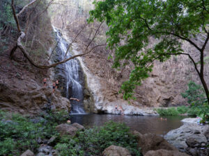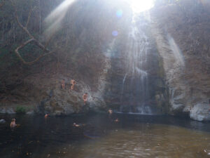 A une centaine de mètres de l’auberge se trouve la cascade de Montezuma. On se dit qu’on pourrait bien aller y faire un petit tour à cette cascade tout de même. Après une chaude après midi, nous prenons le chemin de la cascade. L’endroit est assez étonnant, les roches qui entourent le bassin permettent de se poser et de profiter agréablement du soleil tout en ayant les pieds dans l’eau. Il y a aussi la possibilité de plonger de quelques mètres de haut ainsi qu’une corde pour s’élancer comme à la Fortuna. On s’y donne à coeur joie.