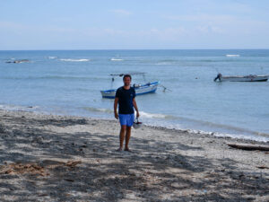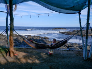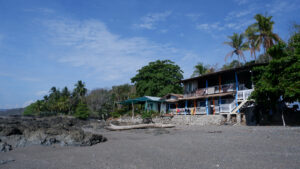 Malgré cet aspect préservé, le prix des hôtels nous avait effrayé. Il y a pas à dire, au Costa Rica, le rapport qualité prix dans l’hôtellerie n’est pas leur point fort, nous devons très facilement payer très cher pour quelque chose qui n’est pas extraordinaire (nous avons été habitués à une qualité exceptionnelle en Thaïlande 😉). Un peu désespérés par les prix, nous poussons notre recherche un peu plus loin et Sixtine finit par découvrir « l’Hôtel Lucy », une petite maison qui ne paye pas de mine… les pieds dans le sable ! Présent sur aucune plateforme de réservation, il faut envoyer un message pour se renseigner. Bonne nouvelle, il y a de la place et pour seulement $20 la nuit ! Jusqu’ici, nous avions plutôt trouvé autour de $70-80 la nuit à montezuma pour des choses pas terrible. Ravis, nous découvrons l’hôtel, avec sa grande loggia sur la plage et ses hamacs vue sur mer, un petit paradis. A l’hôtel Lucy, on ne fait pas trop de chichi, les chambres sont dans un piètre état même si elles sont propres. Un faible ventilateur, la traditionnelle douche froide, un wifi plus que médiocre, des trous dans le mur creusés par les bernard l’hermites. Non tout l’intérêt du lieu réside dans le cadre paradisiaque qui l’entoure. Nous savourons.