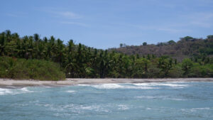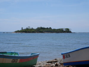 Le lendemain nous avons loué un quad pour parcourir les alentours dont les routes sont bien souvent des pistes ! Nous longeons la côte dans le sens opposé d’hier. Nous passons de plages sauvages en plages sauvages et nous nous disons que nous serions bien restés un peu plus longtemps si on n’avait pas déjà nos billets pour le Pérou. La nature est très belle, magnifiée par un beau ciel bleu. En chemin nous apercevons au loin l’île cimetière de Cabuya. Malheureusement la marée est haute et nous ne pourrons pas y accéder.