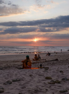 Montezuma est un petit village de bord de mer, assez préservé de tout aménagement urbain, perdu au bout de la péninsule de Nicoya, côté atlantique. Il faut descendre une sacrée pente pour atteindre le cœur du bourg où des restaurants, boutiques à souvenirs s’entassent autour d’un petit supermercado. Ici le tourisme de masse n’a pas encore fait sa place, on y ressent d’ailleurs plutôt une ambiance hippie… des années 80. Nous sommes assez étonnés de découvrir une série d’habitants, blancs, plutôt squelettiques, les cheveux longs, sandales au pied, bref les hippies, au milieu des costariciens.
