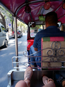 Une petite pensée pour ce monsieur que nous avons croisé dans un temple de Bangkok, qui nous a parlé de la pratique de bouddhisme, de sa vie de banquier, de ses voyages et de ses costumes sur mesure en short/tong avec un grand sourire aux lèvres ! Nous étions tout content de ces échanges jusqu’à ce que nous nous rendions compte que le chauffeur de notre tuk-tuk nous menait en bateau ! Et oui, tout n’est pas si rose dans l’univers du tourisme en Thaïlande, n’oubliez pas que vous êtes de beaux pigeons tous grassouillets !