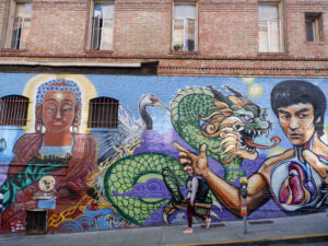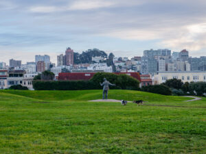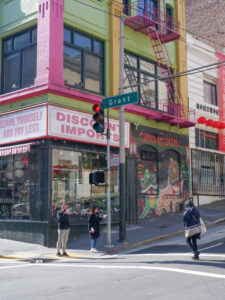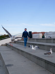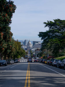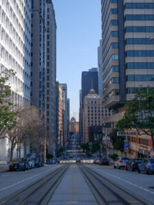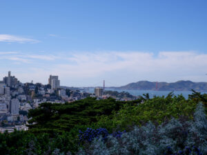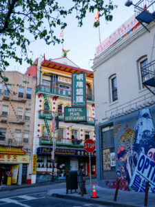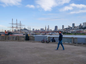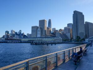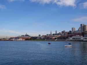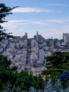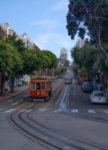 A présent parlons de San Francisco ! Sixtine a chantonné du Maxime le Forestier tout le séjour, on s’est bien imprégné de l’ambiance du lieu. Nous étions déjà impatients de découvrir San Francisco, ville très emblématique du nord de la Californie. Tout français connaît San Francisco et sait y relier quelque chose : un pont, une musique, la Silicon Valley… Mais derrière cette image toute faite de la ville, nous avons été étonnés de découvrir une ville profondément paisible. Avec ses milliers d’habitants, le centre de San Francisco prend des airs de petite ville de bord de mer, très peu de voitures, beaucoup de maisons colorées qui viennent s’aligner le long de ses rues très pentues. Car à San Francisco ça monte et ça descend, et pas qu’un peu ! Nous traversons Chinatown et ses échoppes chinoises, Financial Center et ses building, le port de San Francisco et sa vue sur Bay Bridge.